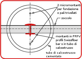 Fondazioni L'esecuzione delle fondazioni è illustrata nel catalogo dei tipi omologati delle FFS nel disegno A-13. L'esecuzione delle fondazioni con palificazione e posa del collare sovrapposto offre una soluzione economica. A differenza dei tradizionali pali di acciaio, il montante profilato Swissfiber bar s può essere posato in getto a contatto con il terreno all'interno del collare sovrapposto senza rischio di corrosione. |